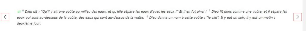 Références ou parallèles : indique les concordances ou les parallèles se rapportant au verset dans lequel vous vous trouvez. Lorsque vous cliquez sur l’icône, les concordances se rapportent au chapitre et au verset dans lequel vous vous trouvez. En cliquant sur chacun d’entre eux, on peut voir le verset auquel il se réfère, et en cliquant sur «Voir dans le chapitre», on accède au chapitre et au verset auxquels il se réfère. |