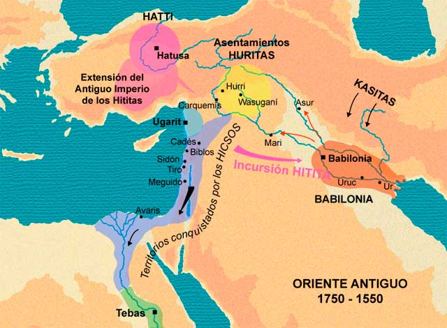 Según toda probabilidad esta región en pleno desarrollo fue el lugar del que salieron los Hicsos, unos jefes militares que se abalanzaron sobre Egipto durante el siglo 18 a.C., fundando allí dinastías extranjeras en el delta y en el curso medio del Nilo. En los textos egipcios el vocabulario empleado para referirse a esos invasores era el que se utilizaba desde hacía siglos para designar a los habitantes de Siria y Palestina.
