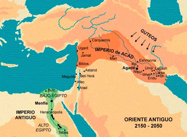 Las intervenciones de Egipto en Palestina no bastan para explicar la ruina de la civilización que se había allí desarrollado durante la mayor parte del tercer milenio, sino que además todo el Cercano Oriente experimentó un período de graves convulsiones entre el 2.200 y 1.900 a.C. Tanto en Mesopotamia como en Egipto, el poder y sus instituciones son barridos: en realidad diferentes son las causas según los países, pero el origen común de esas crisis políticas se debe a la presión irresistible de los nómadas del desierto sirio, conocidos bajo el nombre de mar’tu en las epopeyas sumerias, y de amurru en los textos acadios: son los amorreos. Vilipendiados por los escritos de esa época como seres incultos y despreciables, que desconocían la agricultura y la vida urbana, lograron sin embargo imponerse a los viejos estados del Cercano Oriente. Poco a poco fueron ocupando sus lugares; adoptaron sus formas de vida ciudadana y, algunos siglos después, ascendieron a los tronos de varios reinos de Mesopotamia.