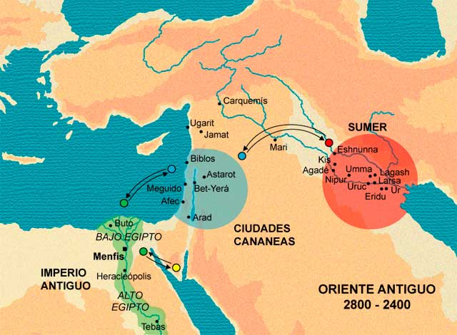 Parece que a partir de la tercera dinastía egipcia (hacia el 2.700), los faraones tuvieron que actuar con autoridad con aquellos a los que los textos egipcios llamaban los “asiáticos”. Y así es como el Antiguo Imperio de Egipto, en un último esfuerzo antes de su derrumbamiento, lanzó bajo el reinado de Pepi I varias expediciones punitivas a Palestina que tuvieron como resultados el desmantelamiento y la ruina de numerosas ciudades fortalezas cuyo creciente poder inquietaba a Egipto; eso ocurría alrededor del 2.250 a.C. «
