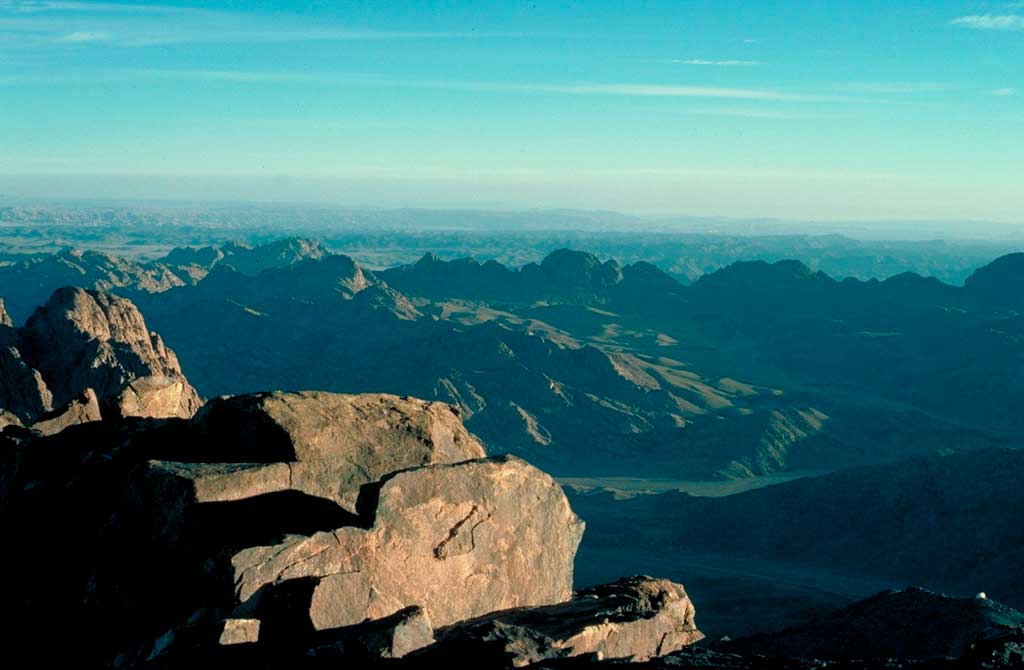 C’est alors que quelques-uns de ces clans faussent compagnie à leurs maîtres, sous prétexte d’un sacrifice à offrir au désert, dans le respect de leurs coutumes ancestrales. Sous la conduite de Moïse, ils évitent la route la plus directe, mais aussi la plus contrôlée par l’Égypte, la”route de la mer”; s’enfonçant alors par les pistes empruntées par les convois de prisonniers condamnés au travail dans les mines de turquoise de Sérabit-el-Khadim, ils gagnent le massif granitique du sud de la péninsule. C’est au cours de cette longue marche que Dieu multiplie pour eux les signes de sa Fidélité. Le Livre de l’Exode et les Psaumes nous rapportent ici sous des formes différentes les merveilles de Dieu sur les bords de la Mer que le texte biblique appelle Mer des Roseaux.