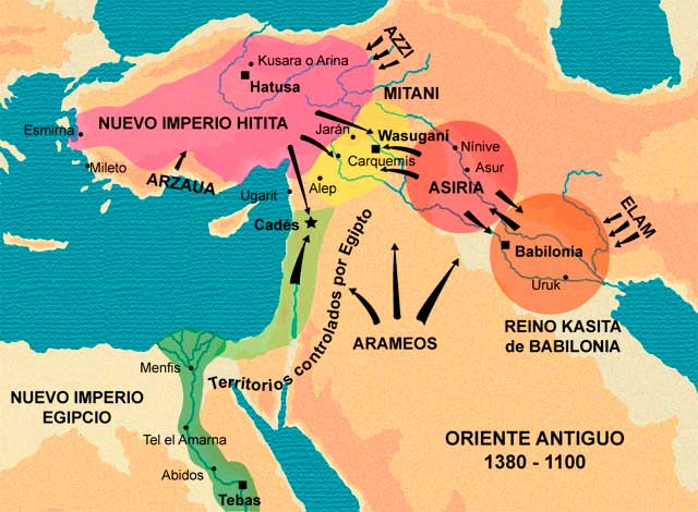El imperio hitita, que en el siglo 13 había inquietado un tiempo al gran Ramsés, había sufrido en el siglo siguiente incursiones extranjeras, y ahora tracios, frigios y armenios se empeñaban en despedazarlo. En tales circunstancias los pequeños estados del Cercano Oriente podían llevar a cabo sus proyectos sin verse molestados por los grandes.
