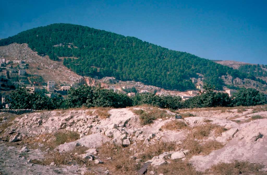 La meseta de Benjamín prolonga la montaña de Efraím hacia el sur. Una línea de colinas de las cuales la más meridional es el Monte de los Olivos (818 metros), forma el límite oriental, dominando las pendientes del desierto de Judea: ya estamos aquí a la altura de Jerusalén.