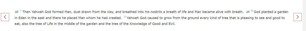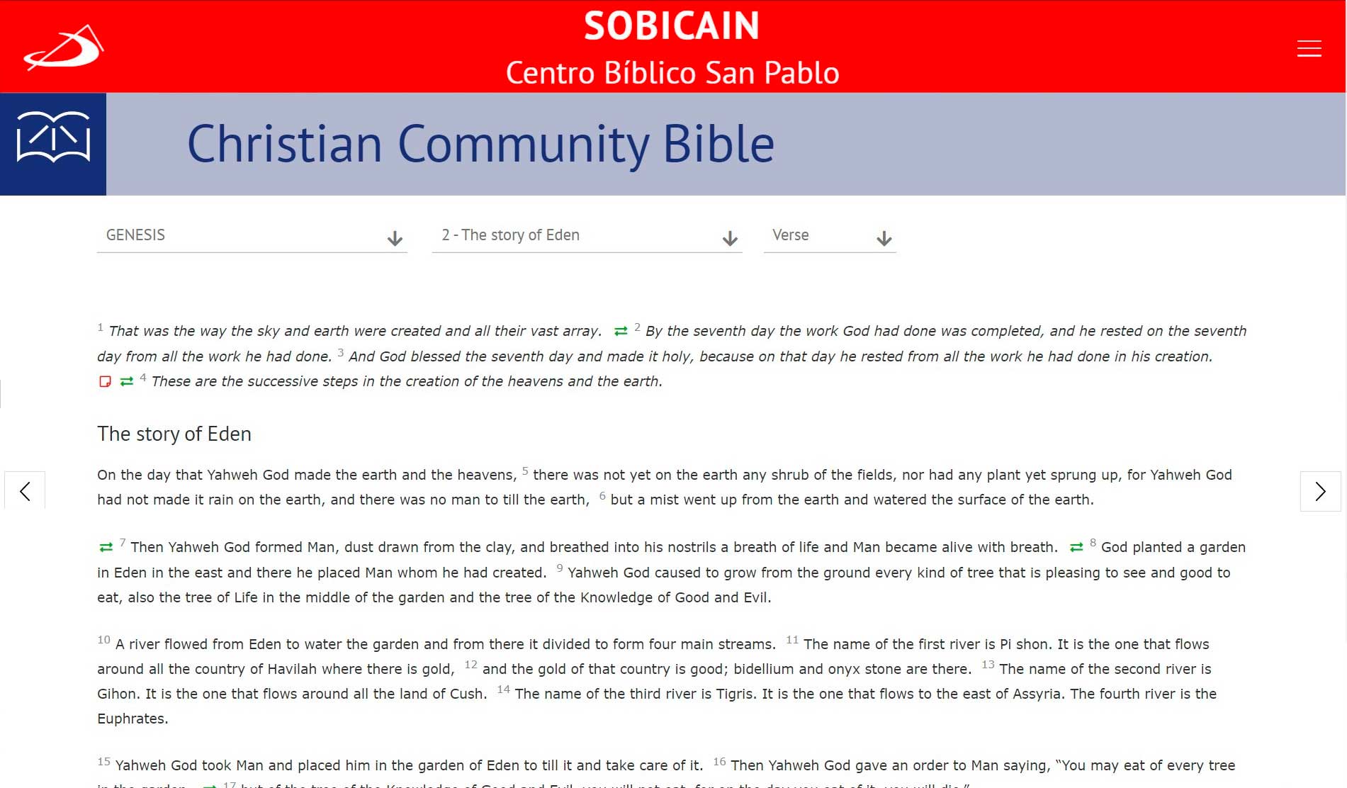 At the top of the page, we find the navigation menu from which we can choose the book, chapter and verse we want to read.