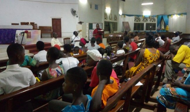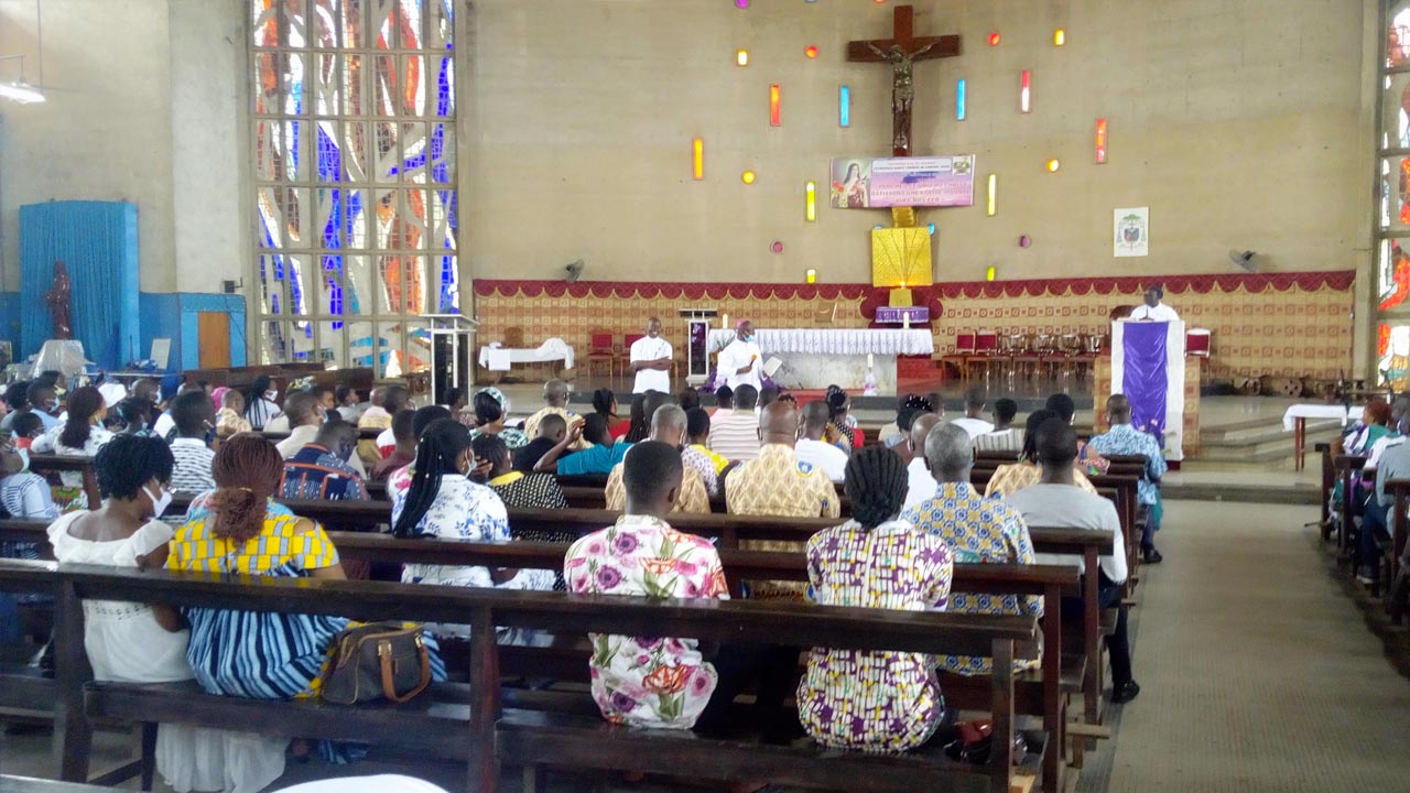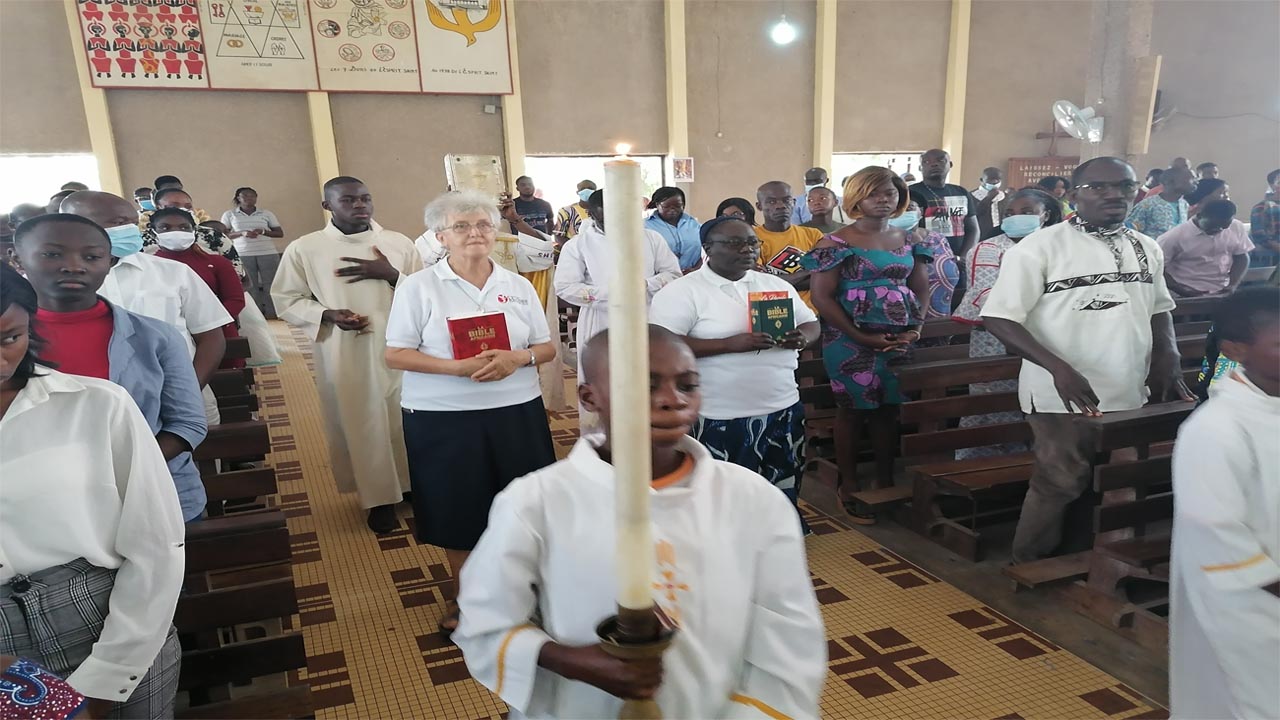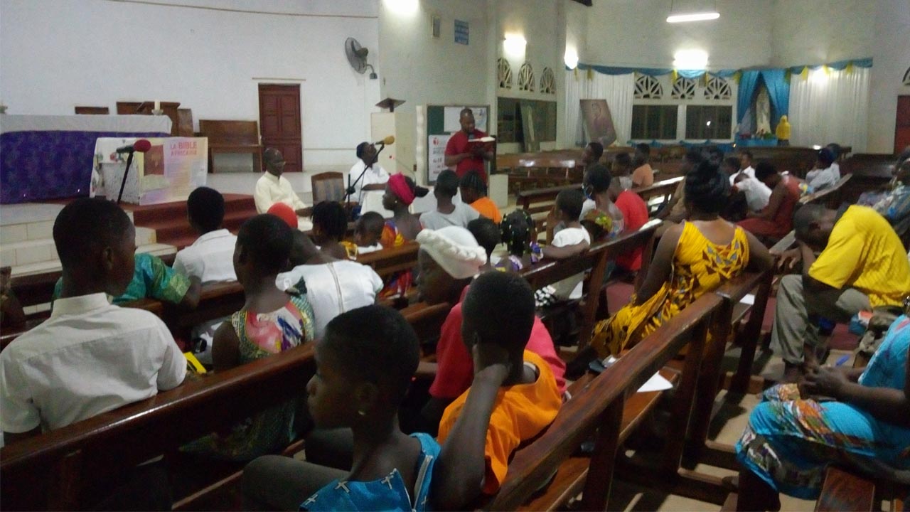 Da lì, le sorelle sono scese a Bouaké, seconda grande città della Costa d’Avorio. Qui il vescovo ausiliare con il vicario episcopale e i parroci della città avevano già sensibilizzato la gente per una settimana biblica da vivere come momento forte di incontro con Dio nella sua Parola. La partecipazione è stata grande. La domenica di apertura e quella di chiusura sono state caratterizzate dall’intronizzazione solenne della Bibbia, da un Panel con la participazione di sr M. Josée Ngave, sr Gemma Galfrè e un parroco biblista che ha accompagnato le sorelle. Anche qui sono stati coinvolti bambini, studenti e cristiani giovani e adulti.
